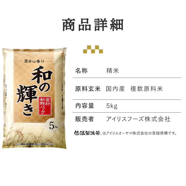 ![[公式][5kg]新米 令和7年産のみ使用 白米 和の輝き 国産ブレンド 密封新鮮パック 脱酸素剤 低温製法米 アイリスオーヤマ](/img/0119/goods/4/0119-113800.jpg)