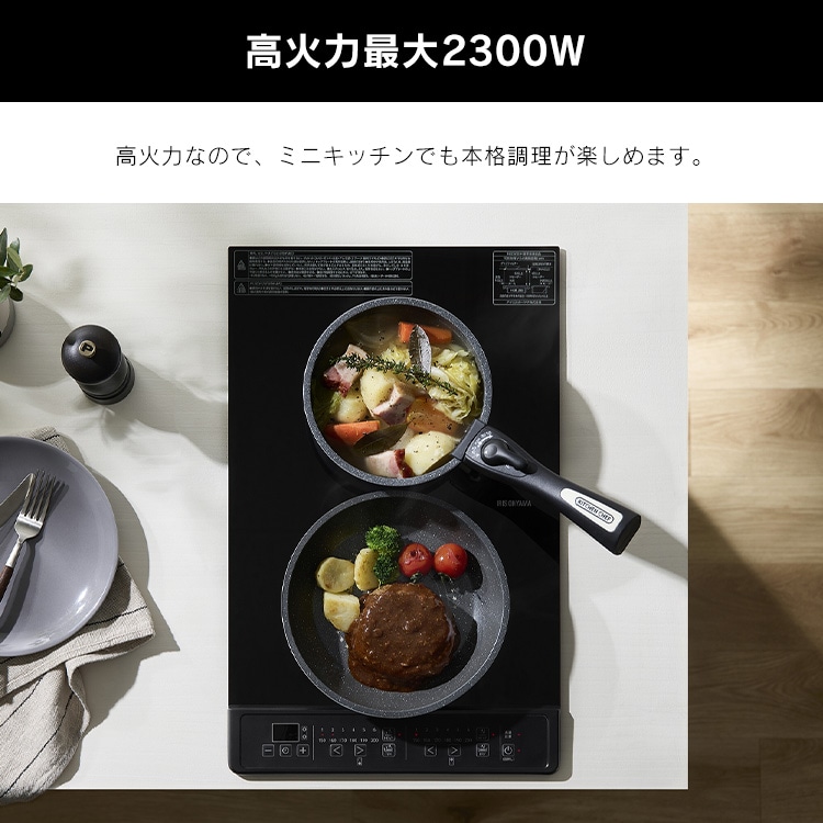 2つのIHヒーターが縦に並んでいるので加熱スペースがキッチンを占有せずに、調理スペースを広々と使用することができます。