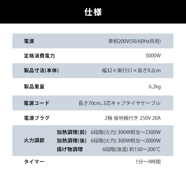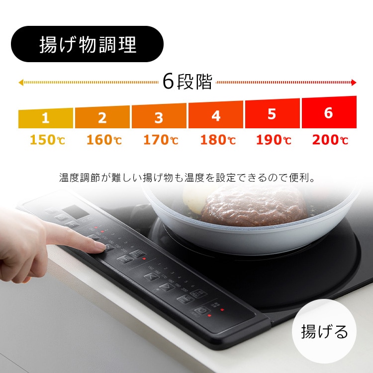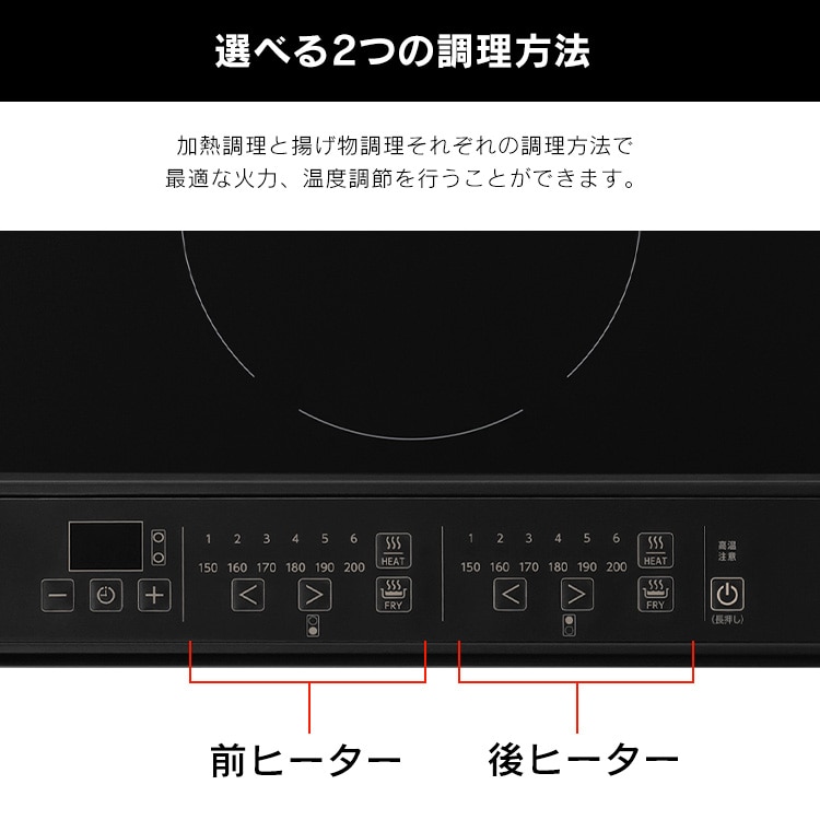 ・揚げ物なべそり検知機能:底のそりが大きいなべを使用して揚げ物調理をすると、エラーを表示して、加熱を停止します。