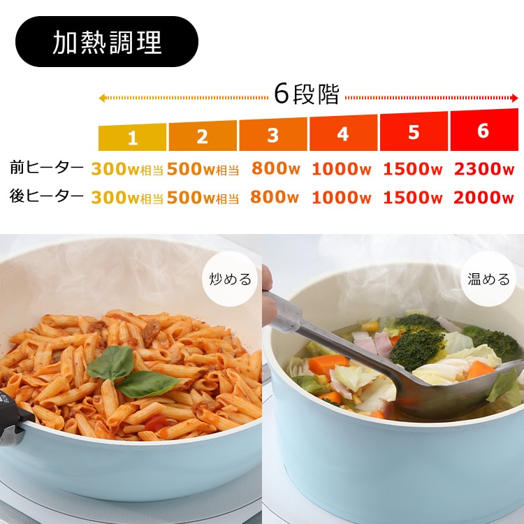6段階(約2300W、約1500W、約1000W、約800W、約500W相当、約300W相当)