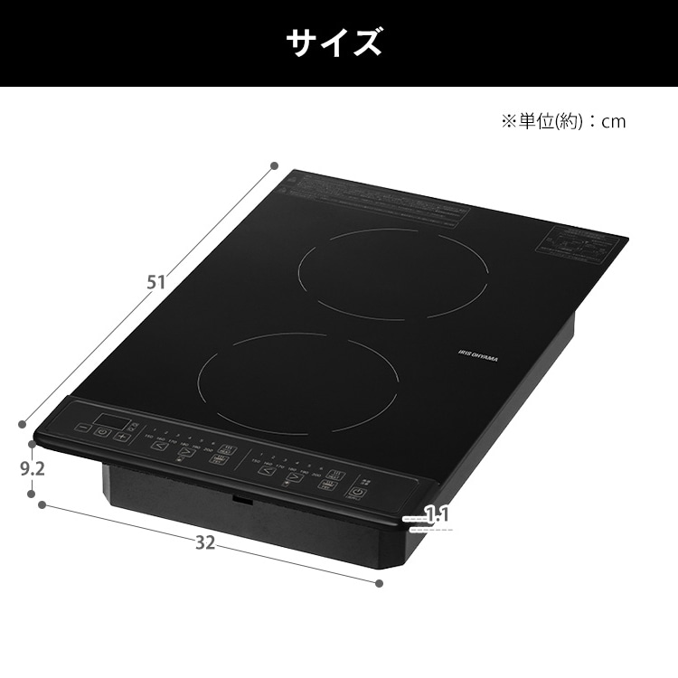 ガスコンロの開口寸法に合わせたコンパクトな縦型2口のIHクッキングヒーターです。※1