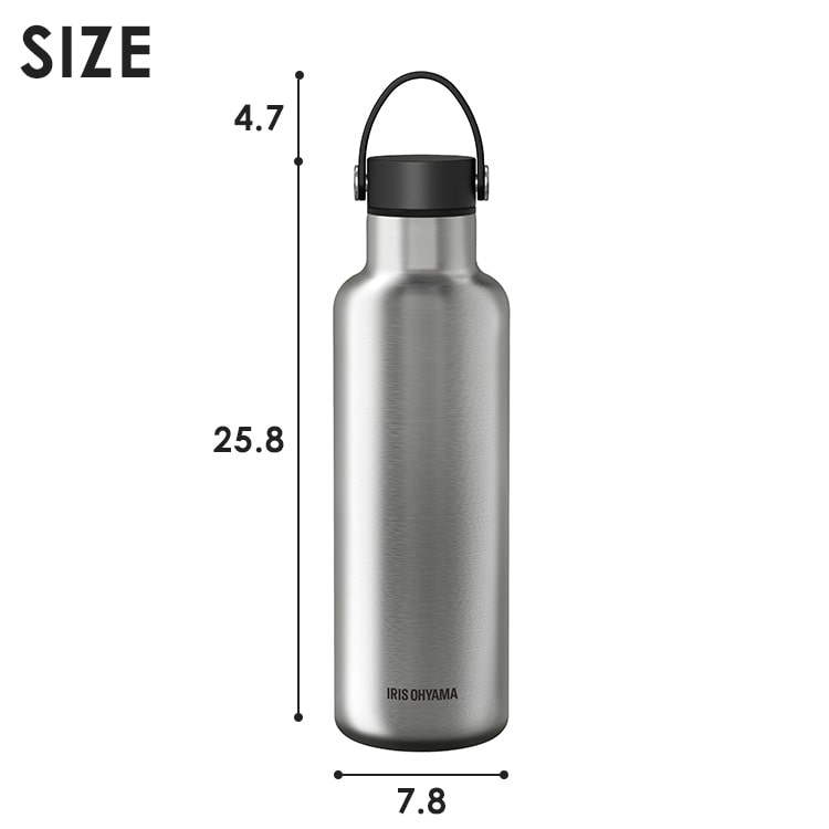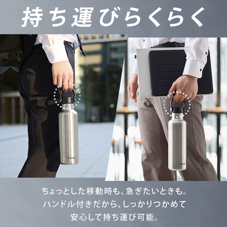 スタイリッシュなデザインに、持ち運びに便利なハンドルを備えた高保冷ステンレスマグボトルです。