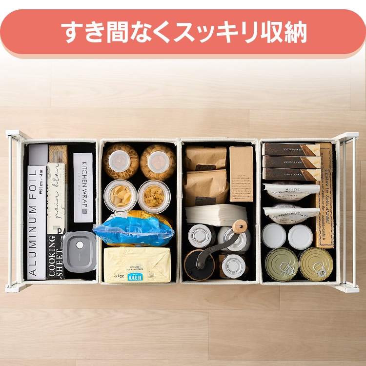 収納したい物に合わせて選べるサイズラインナップで、事務用品や日用品の収納にも使い勝手がよく、隙間なくスッキリ収納することができます。