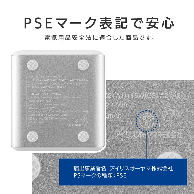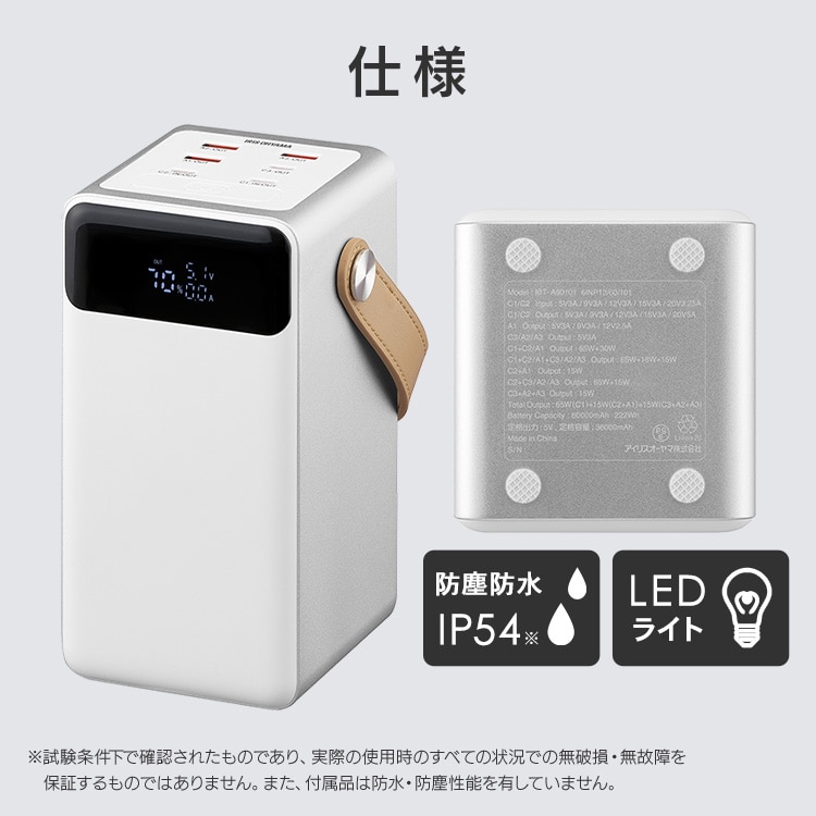 持ち運びにも便利なハンドル付きで、60000mAhの大容量バッテリーです。