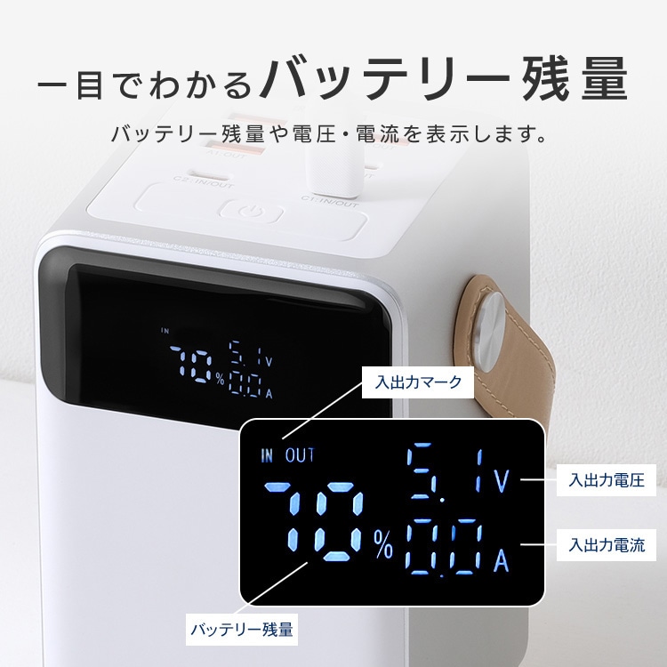 ポータブル電源では大きすぎると感じる方にも扱いやすい、コンパクトなサイズです。