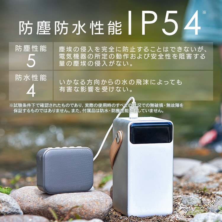 軽い雨やほこりを気にせず使えるIP54相当の防塵・防水性能※2でアウトドアでも使用可能。