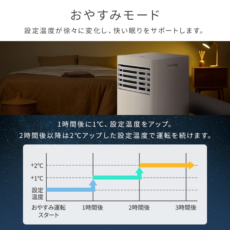 運転モードは冷風・除湿・送風を搭載しており、1台で3役をこなします。