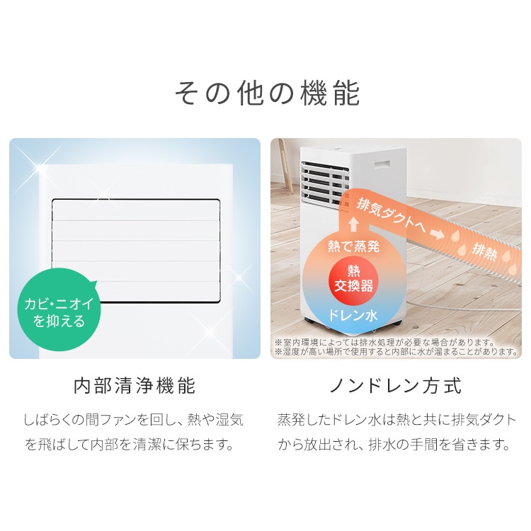 ※1 ノンドレン方式は冷風・除湿運転時のみです。湿度が高い環境では排水処理が必要になる場合がございます。