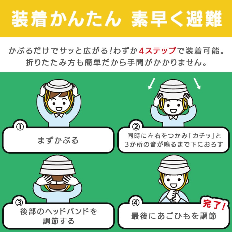 折りたためてコンパクトに収納できる、子供用の防災ヘルメットです。