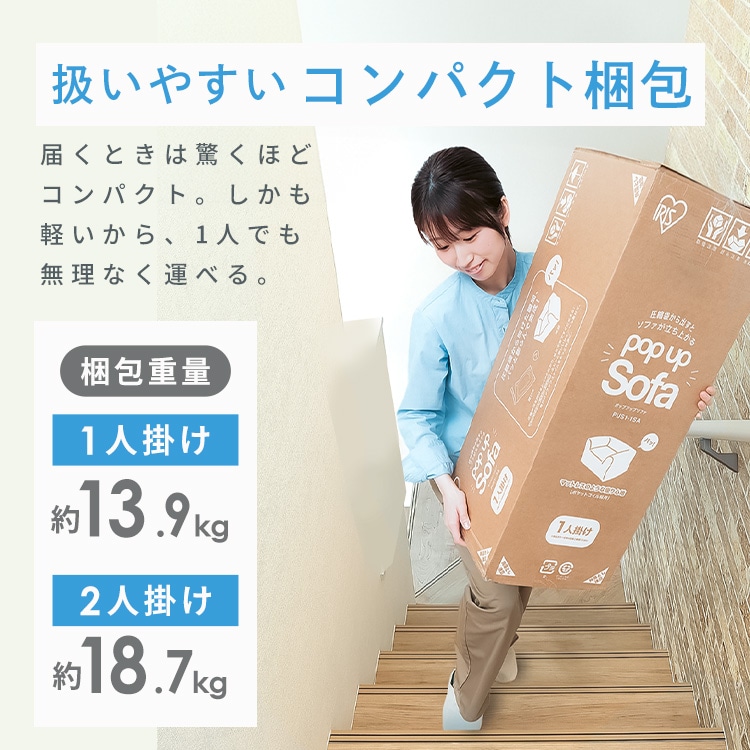 1人で持てるコンパクトな梱包サイズ。自宅の2階用のソファとしてもおすすめです。