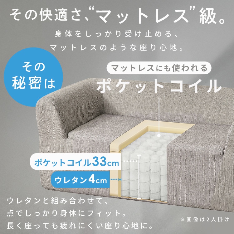 座面にポケットコイルを使用しているため、マットレス同様の上質な座り心地のソファです。