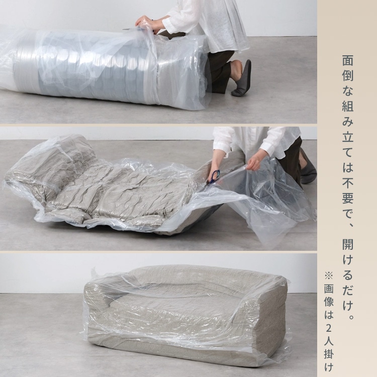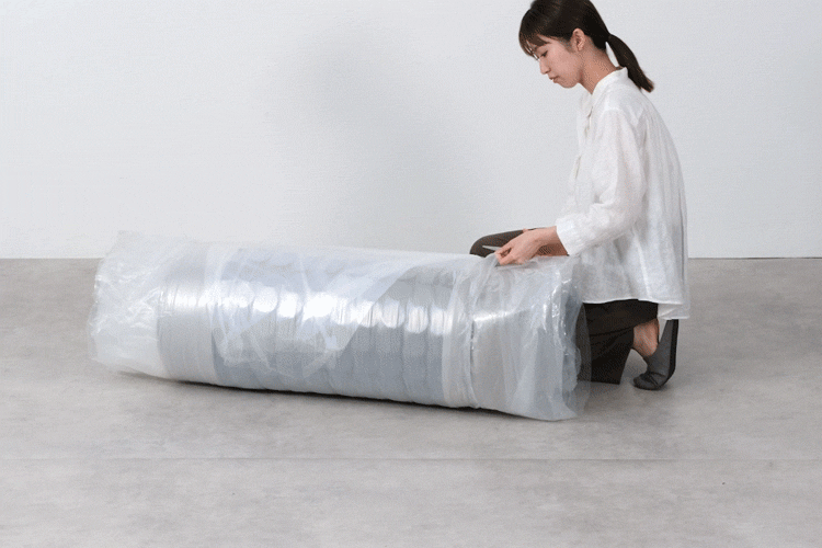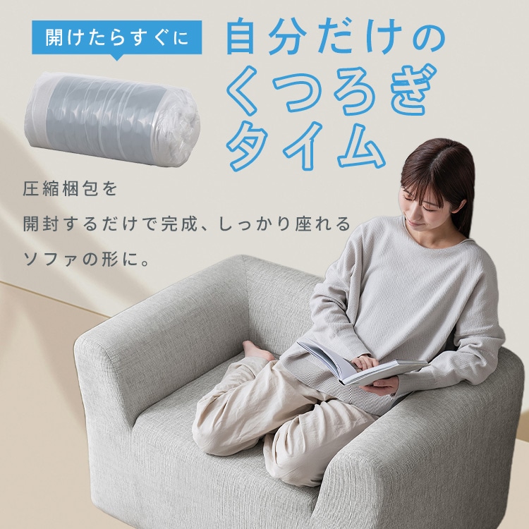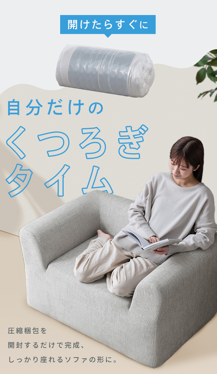 開封だけで完成。ポンっと広がる圧縮梱包で、すぐにくつろげます。