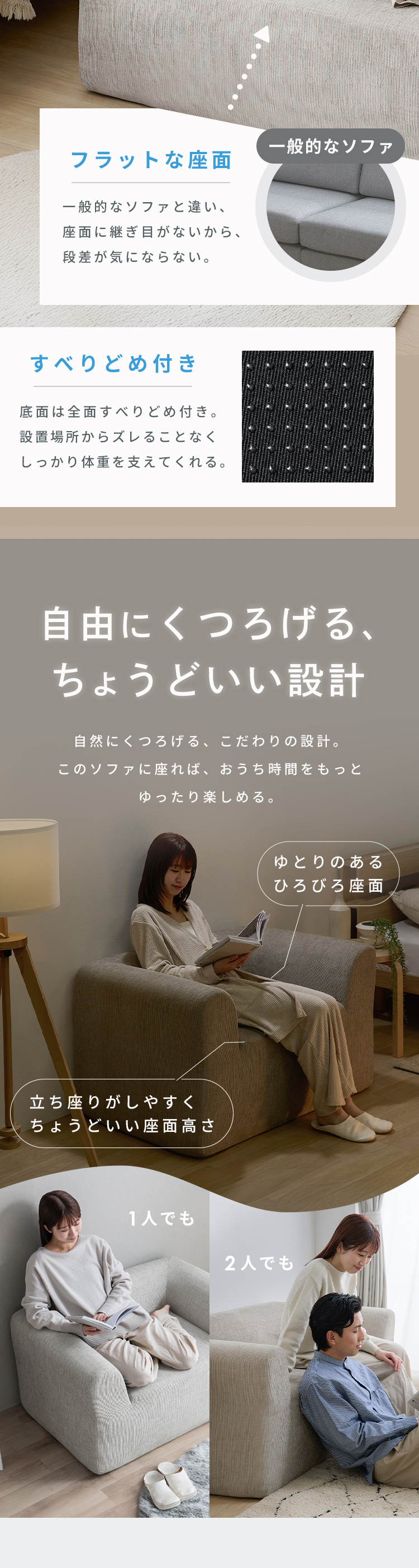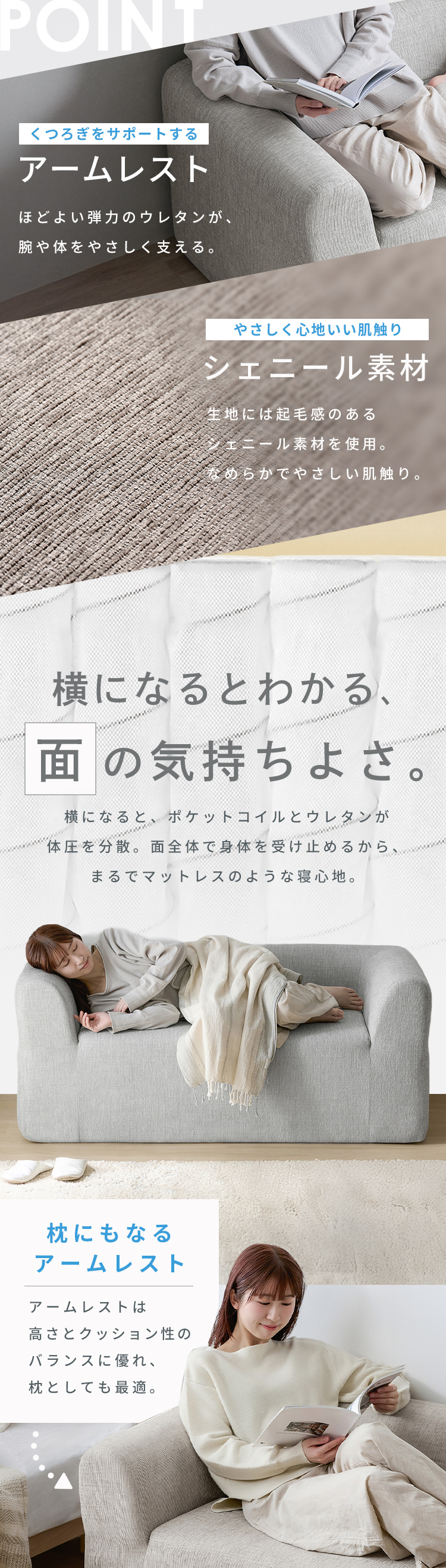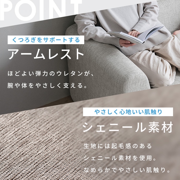 上層のウレタンがふんわり包み込み、シェニール素材の優しい触り心地で、リラックスタイムにぴったりです。