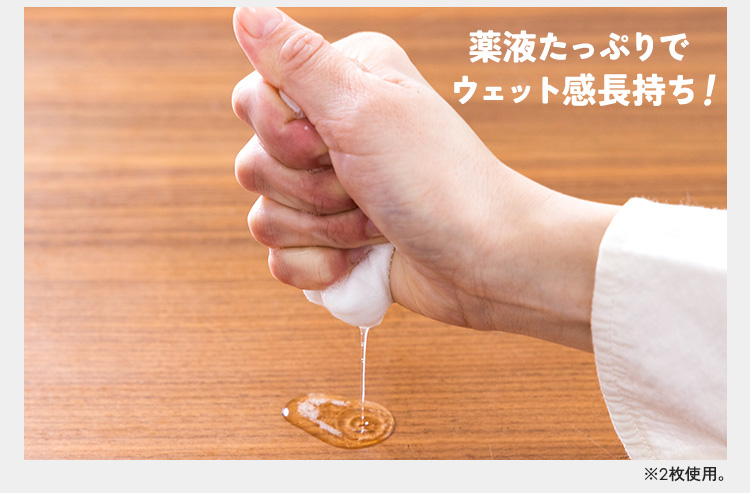 薬液がまんべんなく浸み込むから、1枚でたっぷり拭きとれます。