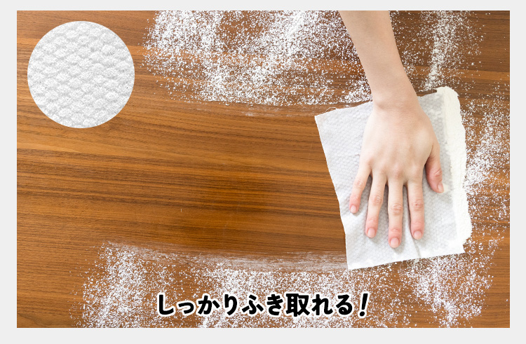 1枚でたっぷり拭き取れるやわらか極厚仕様。