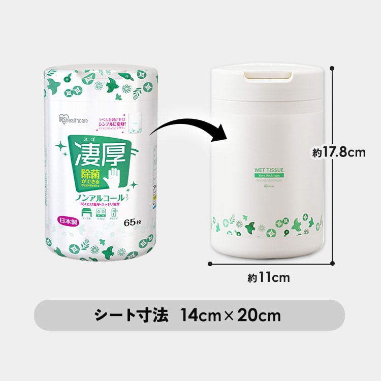 ※詰め替えの際は必ず「アイリスオーヤマ 凄厚 除菌ができるウェットティッシュ ノンアルコール ボトル」に入れてください。