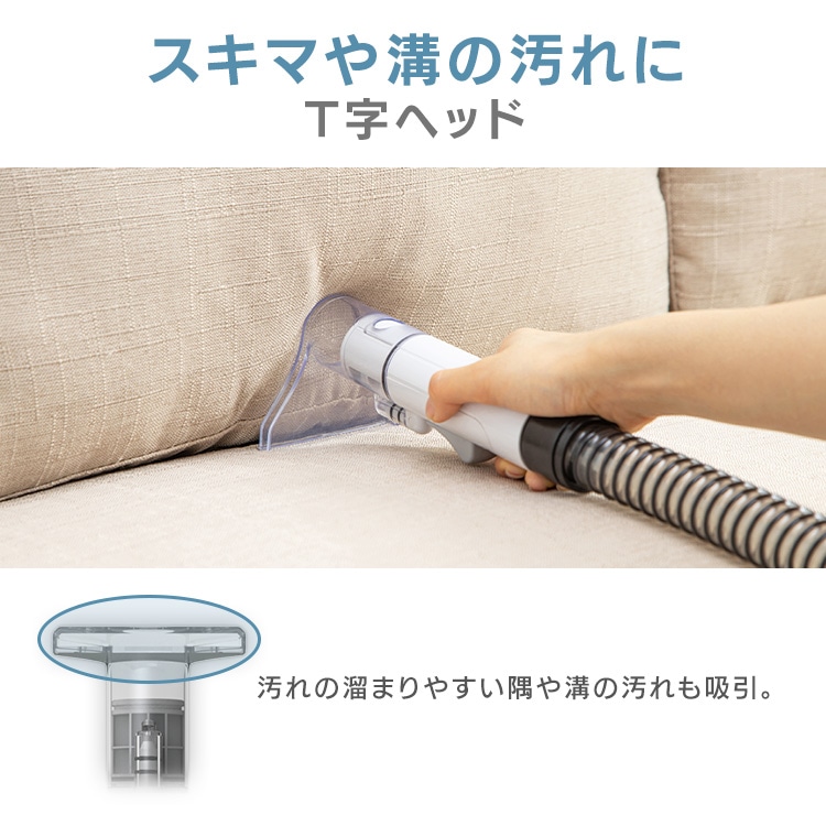 隅や溝の汚れを吸い取りやすいT型ノズル。