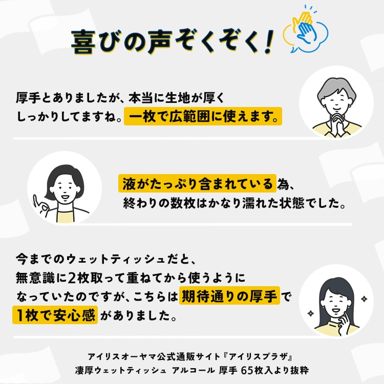 1枚でたっぷり拭き取れるやわらか凄厚仕様。