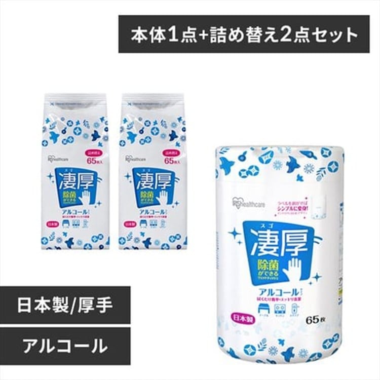 ![[本体1個+詰め替え2個]凄厚ウェットティッシュ アルコール 厚手 65枚入 アルコール](/img/0119/goods/L/1913493_00.jpg)