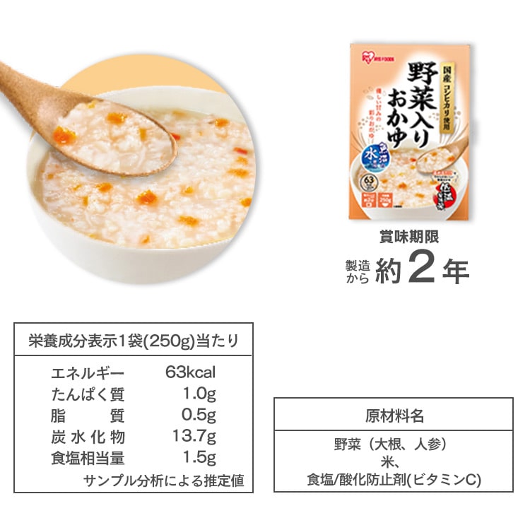 [マイル5倍!12/7迄][公式]おかゆ 野菜入りおかゆ 250g×10袋 保存食 備蓄用 アイリスオーヤマ