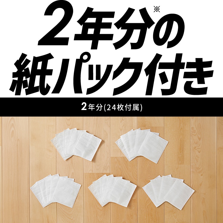 充電アダプター、すき間ノズル、使い捨てダストパック×24枚(1枚は本体内にセット済み)