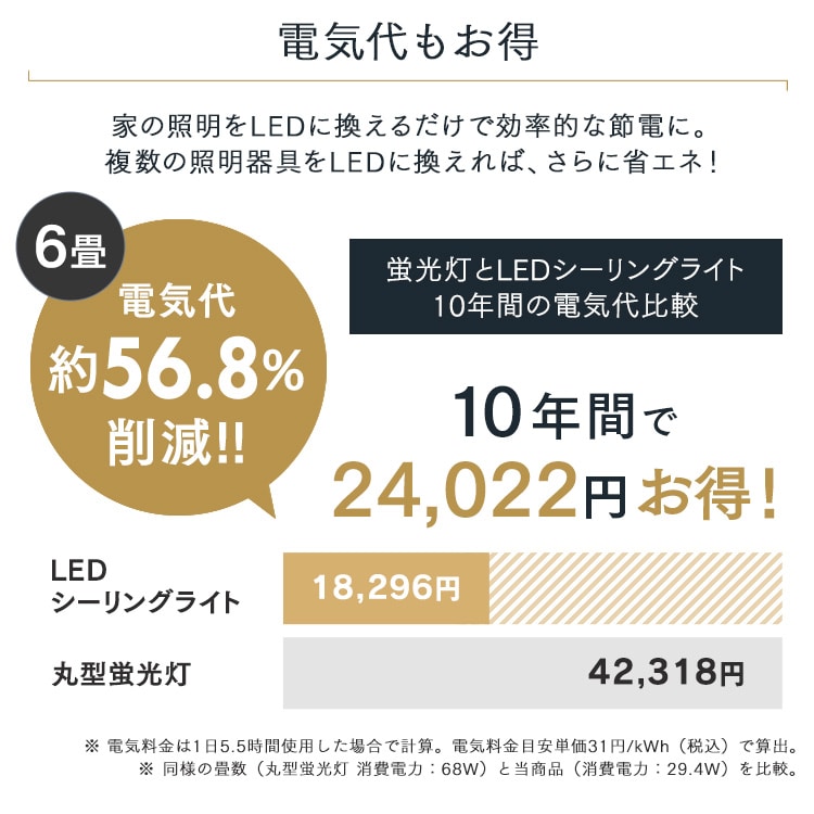 ・「LED」だから節電:明るく効率よく発光。アイリスオーヤマ独自の技術で明るさはそのままに、高い省エネ性能を可能に。
