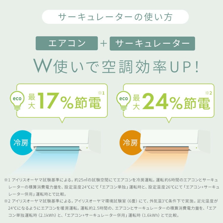 エアコンと併せて使用することで、お部屋の空気を効率的に循環させることができます。