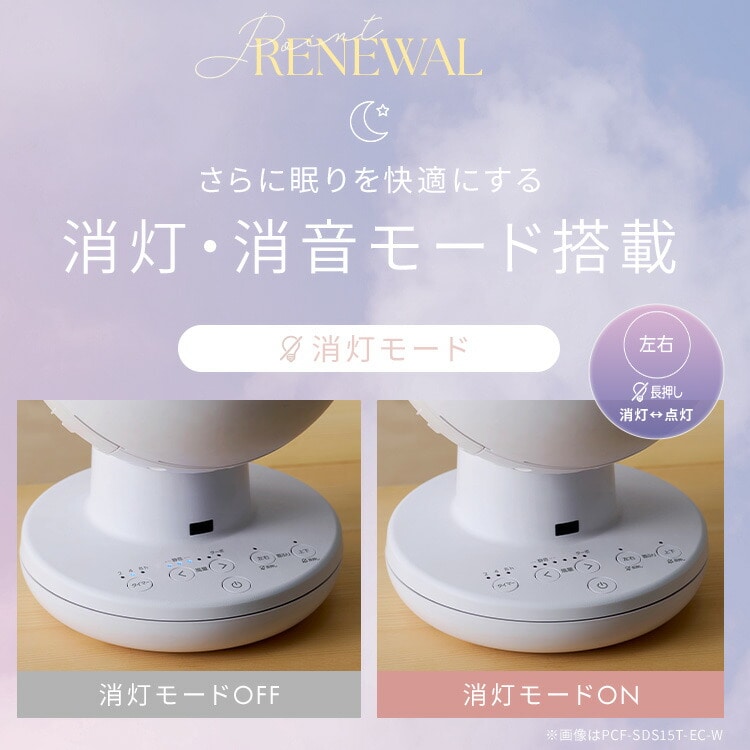【消灯モード】「左右首ふり」ボタンを長押しすることで操作部LEDが消灯します。就寝時の眩しさを解決。