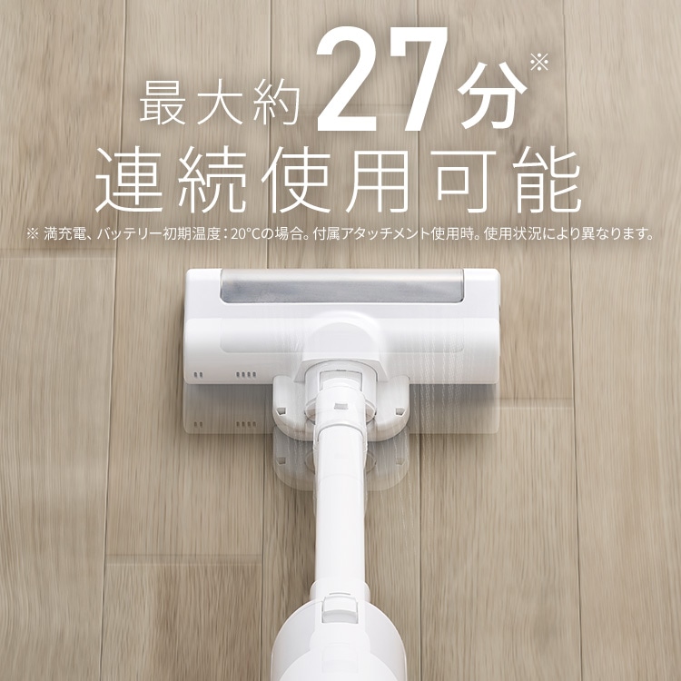 パワフルな吸引力で細かいほこりや壁際のゴミまで残さず吸引。
