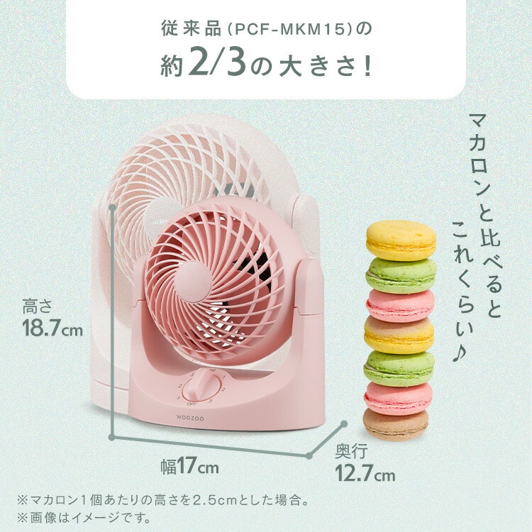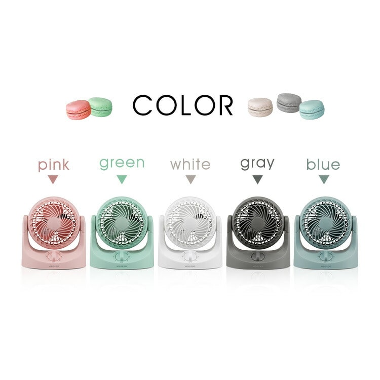 マカロンのようにコロンとしたフォルムの卓上扇風機です。