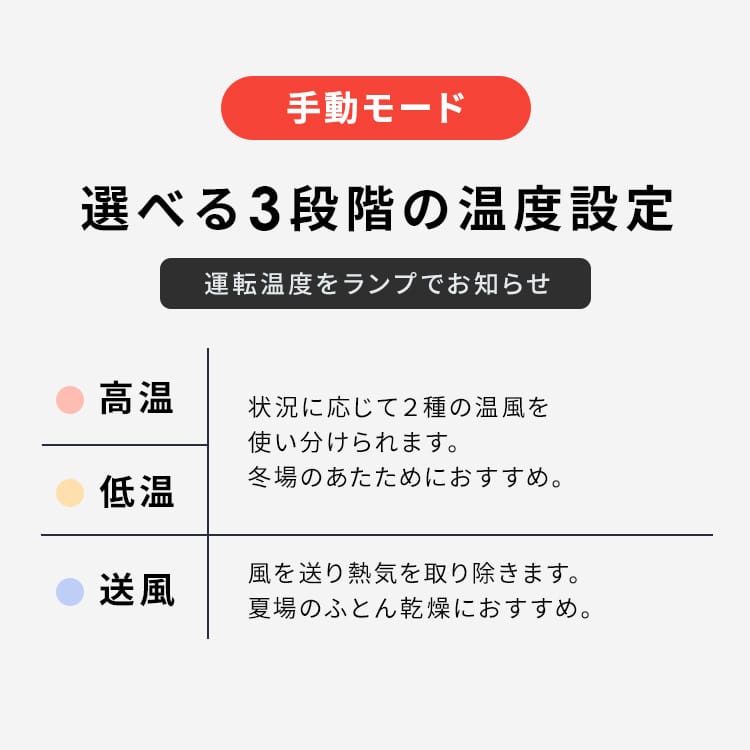 あたため:就寝前など、短時間でふとんをあたためたいときに