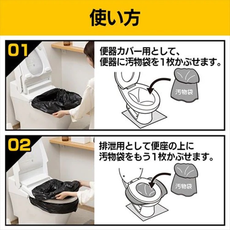 2:便座の上に汚物袋をもう1枚かぶせる(排泄用)。