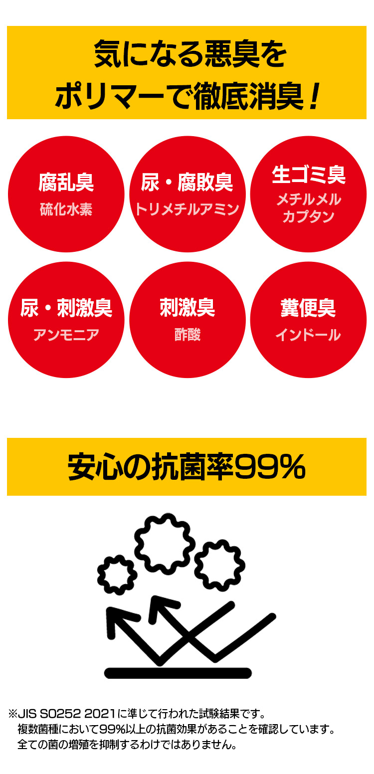 ◆消臭:ニオイ吸着&アンモニア99%消臭(※3)