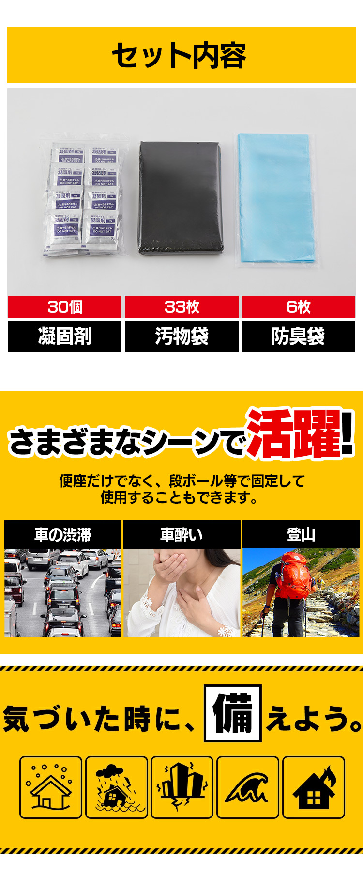 凝固剤×30、汚物袋×33、防臭袋×6(30回分)