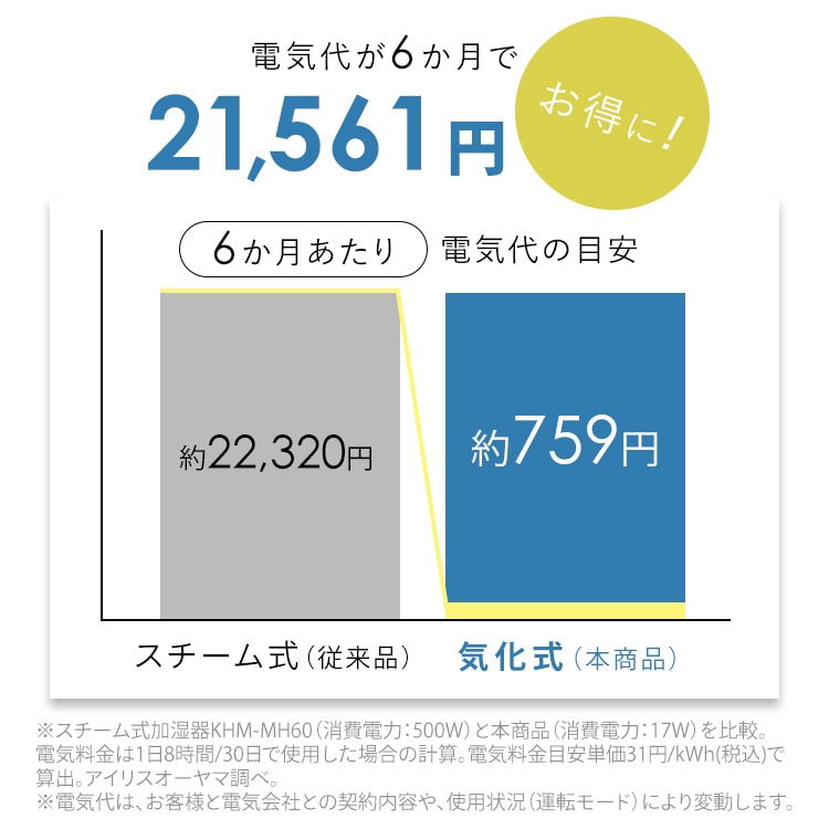 ※1 室温20℃、湿度30%の条件下での値です。室内の温度や湿度によって、加湿量は異なります。