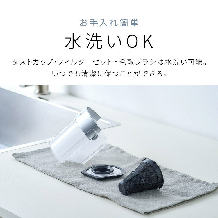 ダストカップ・フィルターセット・回転ブラシは水洗い可能。