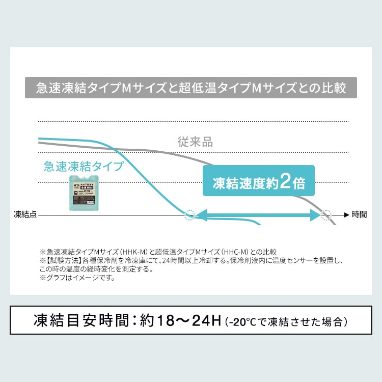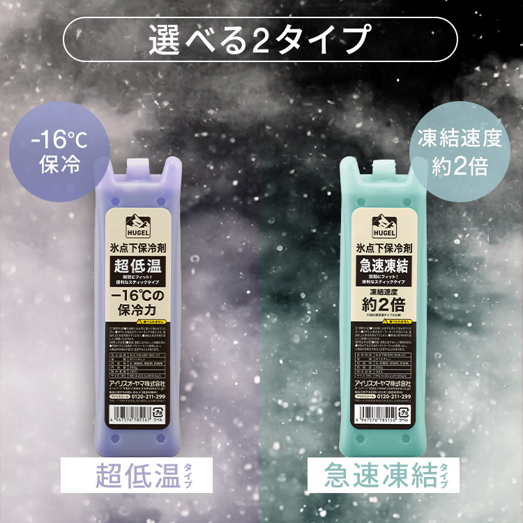 ・急速凍結タイプ:-10℃の保冷力/超低温タイプと比較して凍結速度が約2倍!短い冷凍時間で使用可能!