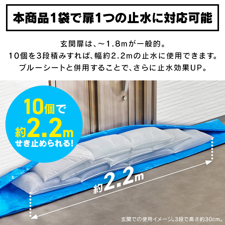 (検索用:土嚢・土のう・10個入・水で膨らむ・土砂不要・最短3分・最大20kg・玄関・ガレージ・排水溝・約2.2m・せき止める・大雨・豪雨・台風・水害・浸水対策・防災・防災用品・土嚢袋・緊急・簡易土のう・使い切り・4967576785761・アイリスオーヤマ)