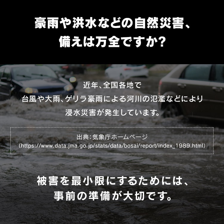 浸水水位が約20cmまでの初期水害対策におすすめです。