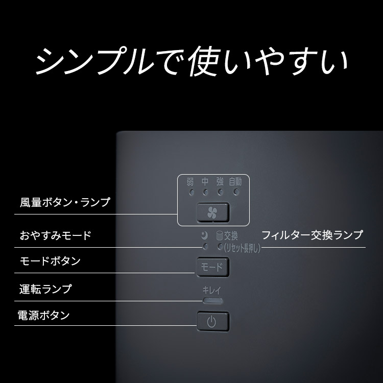 汚れた空気を一気に取り込み、キレイな空気が部屋の隅々まで素早く行き渡るスピード空気清浄。