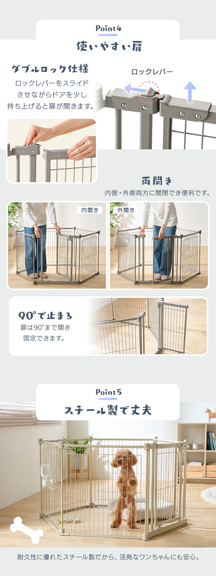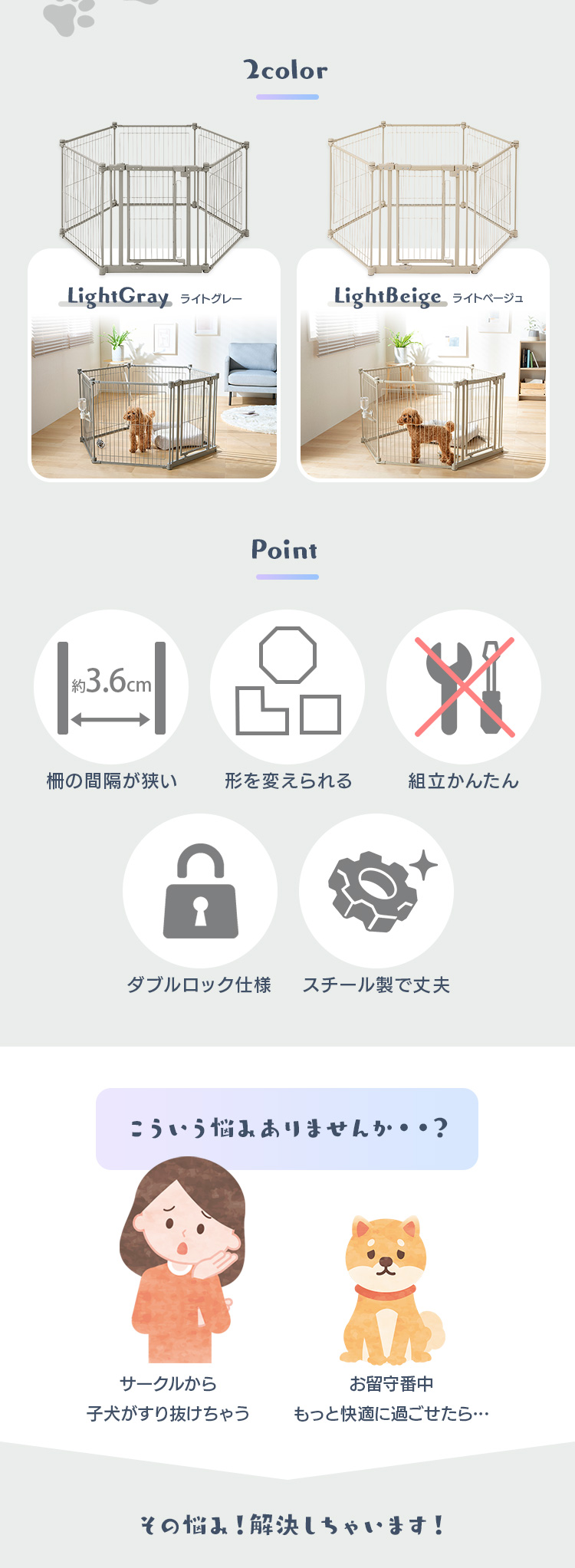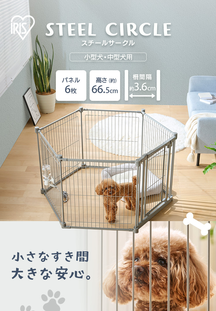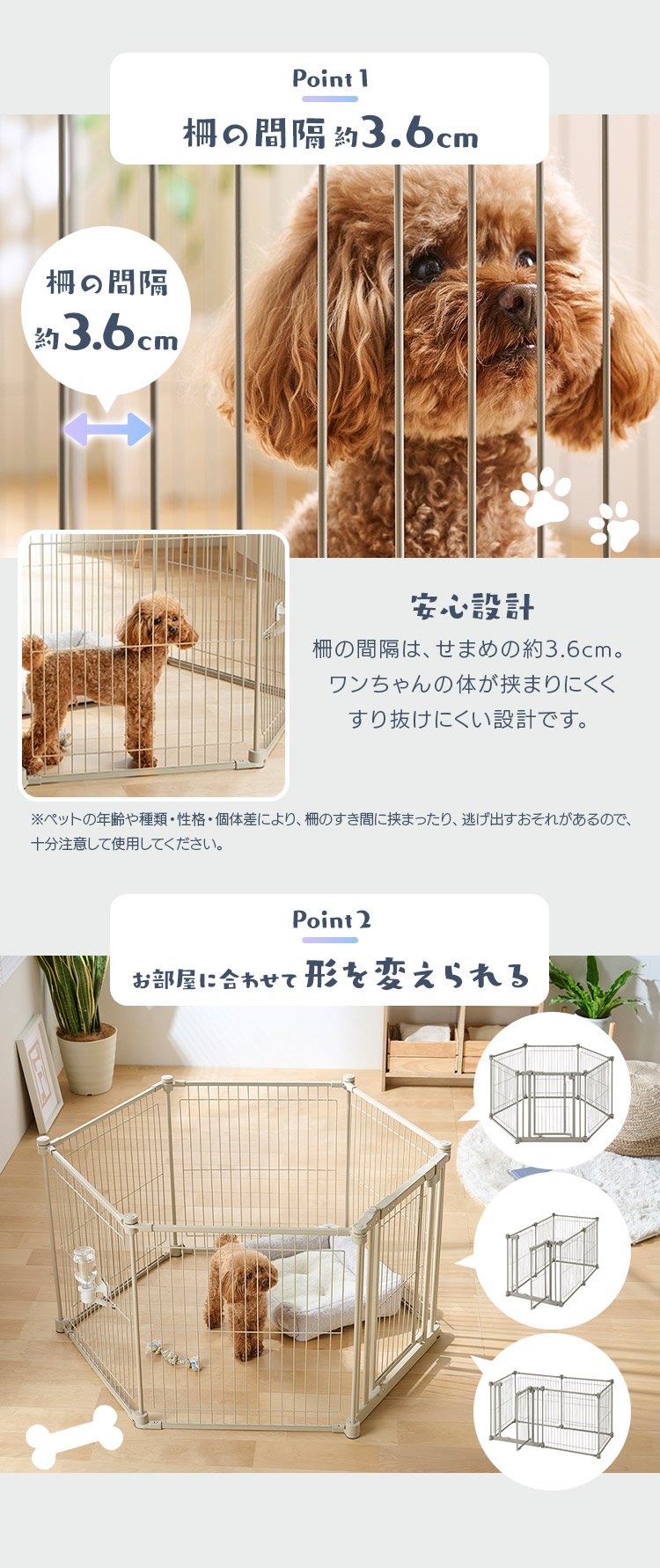 パネルの線材のすき間が約36mmで、子犬でも挟まりにくい安心設計です。