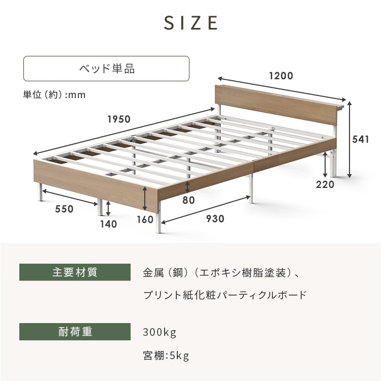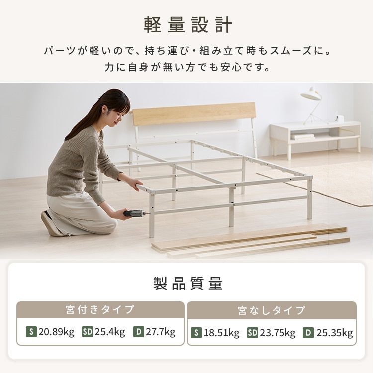 ウッドスチールベッド【セミダブル】【宮付きタイプ】