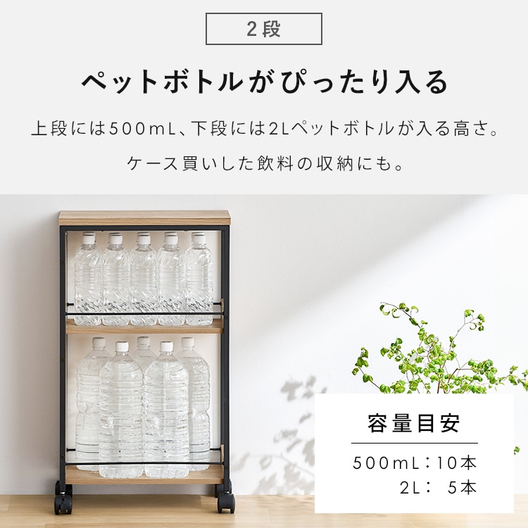 上段には500mL、下段には2Lペットボトルが入る高さ。