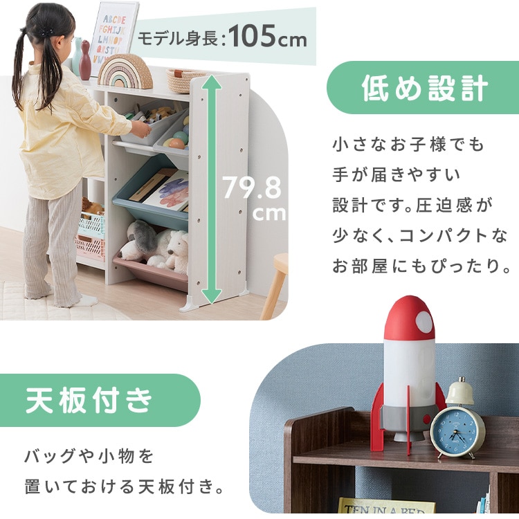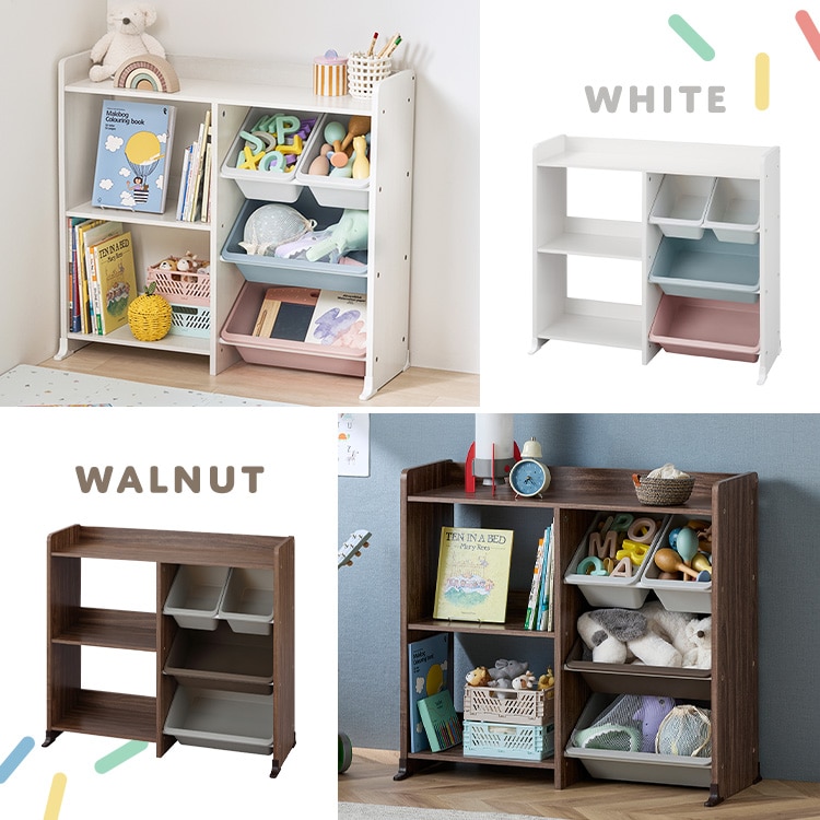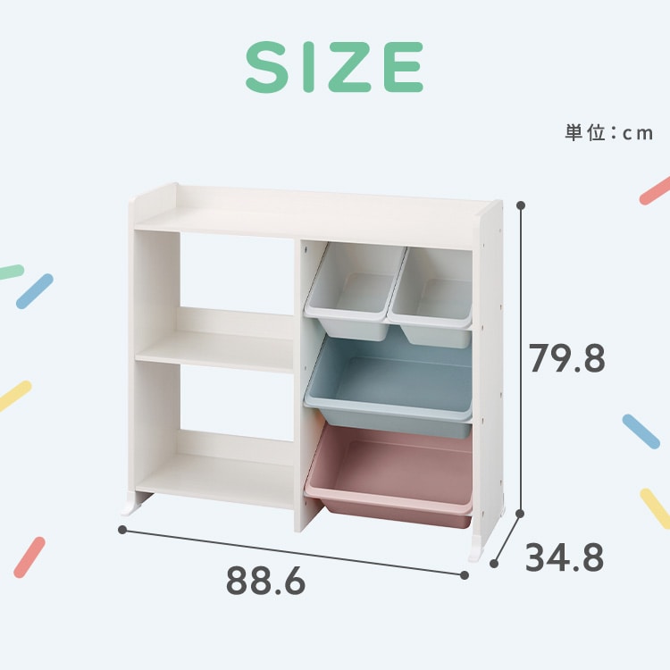 色分けされていることで「どこに何を片付ける」のルールが決めやすく、お子様の自立心をサポートし楽しくお片付けができる収納用品です。