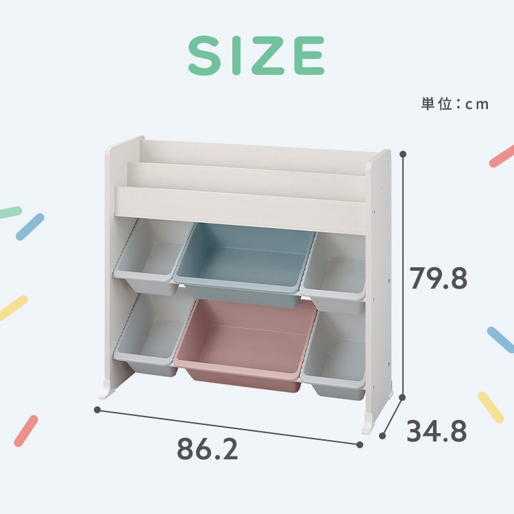 色分けされていることで「どこに何を片付ける」のルールが決めやすく、お子様の自立心をサポートし楽しくお片付けができる収納用品です。