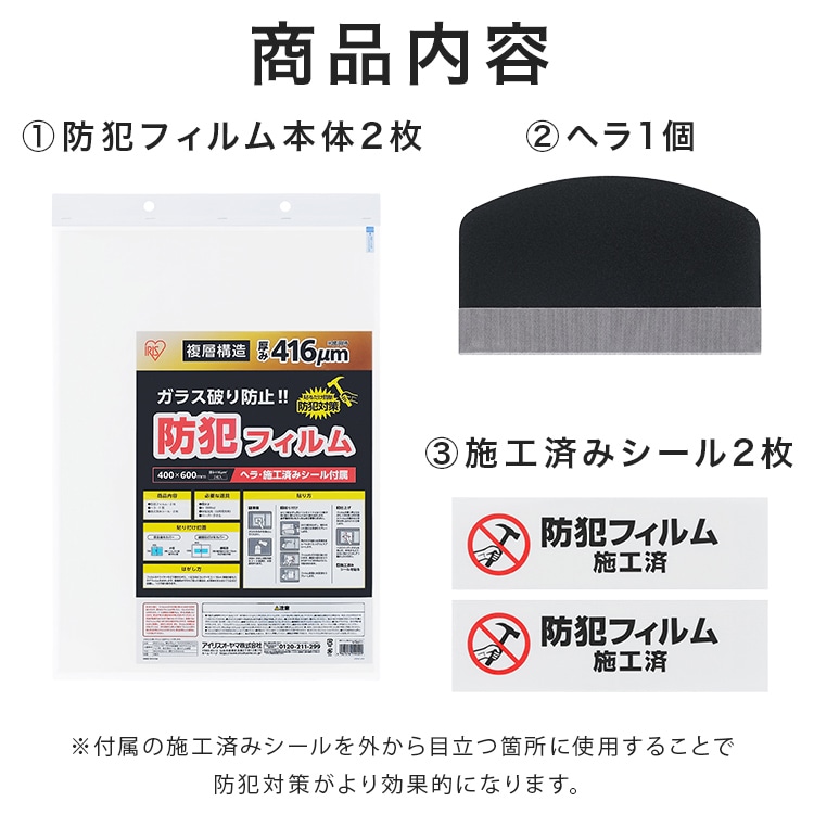 防犯フィルム×2、ヘラ×1、防犯シール×2