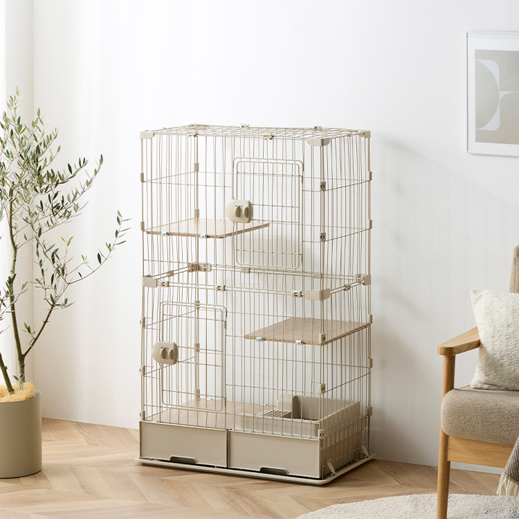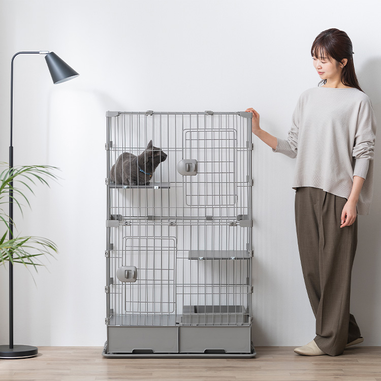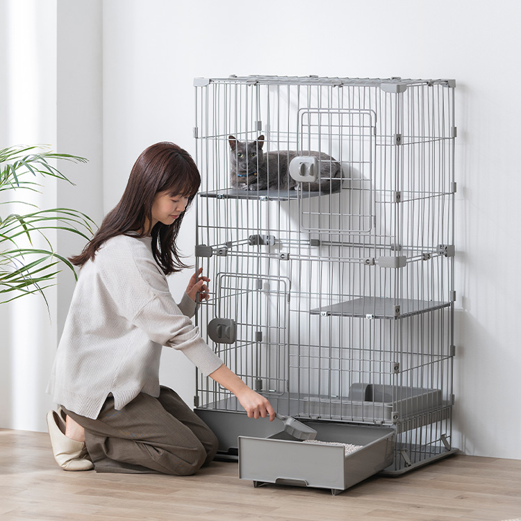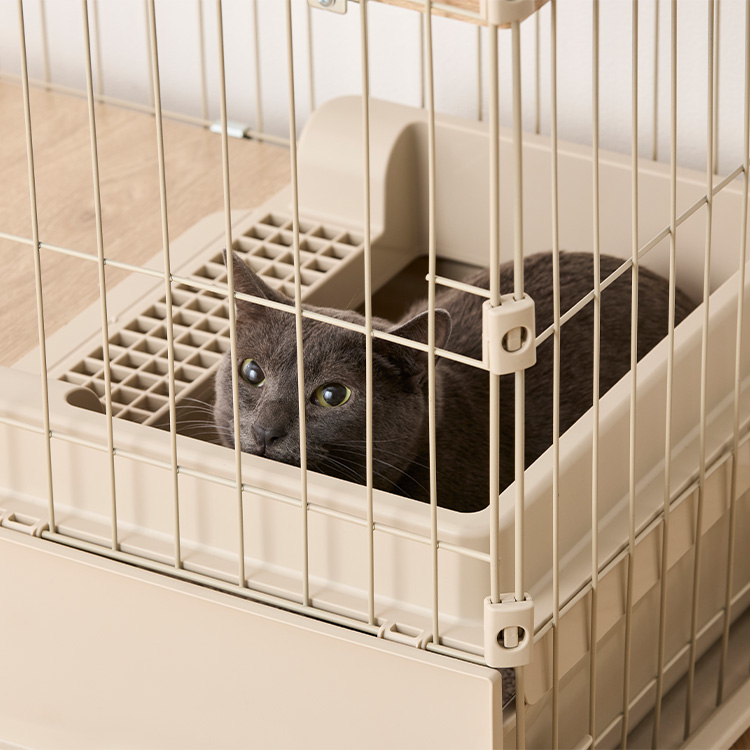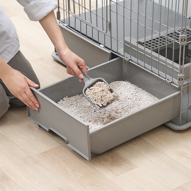 ケージの下部にトイレ・収納付きで、狭いスペースにも置きやすい省スペース設計です。
