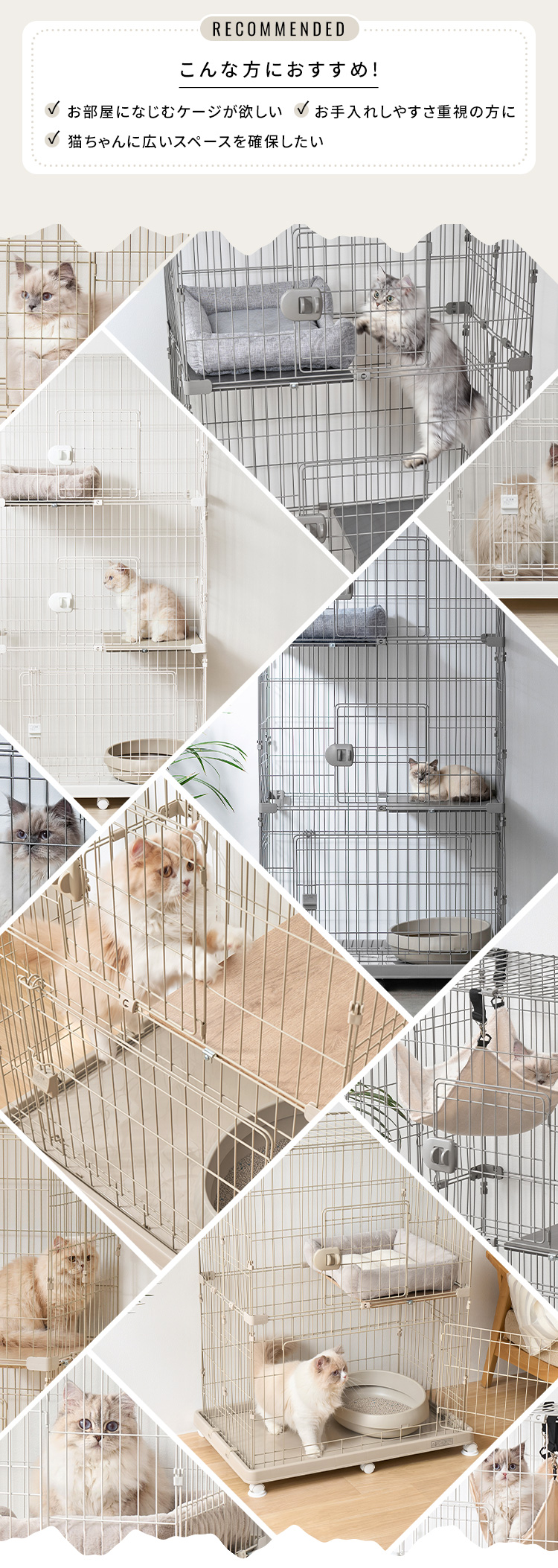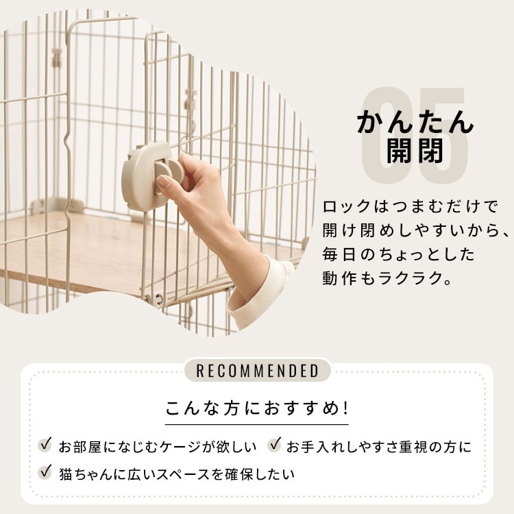 お世話がしやすく、猫ちゃんもくつろぎやすい、ゆったり設計です。
