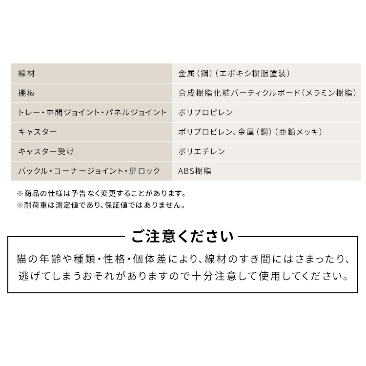 全ての段に扉があり、ペットや物の出し入れが簡単にできます。