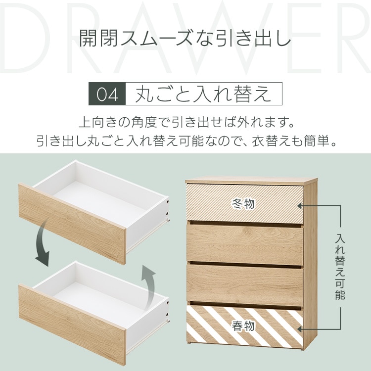 引き出しを丸ごと入れ替え可能なので、衣替えも簡単。